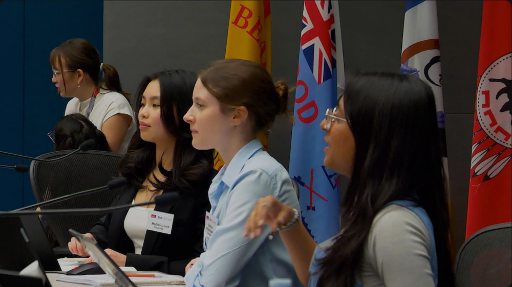 À Calgary, des élèves du secondaire ont symboliquement pris les commandes de l'hôtel de ville dans le cadre du programme annuel « She Governs », dont l'objectif est de permettre aux jeunes femmes de se familiariser avec la politique municipale.