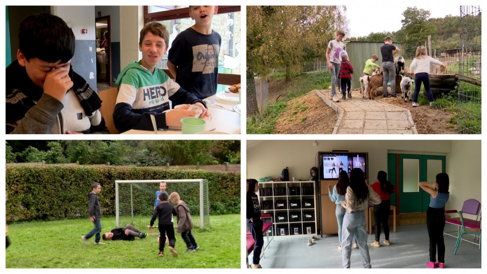 Aqui dançamos, ali jogamos futebol. Parece um centro recreativo, mas estamos num colégio interno. A instituição acolhe jovens com idades compreendidas entre os quatro e os dezassete anos. Ao todo, trinta e seis residentes vivem aqui quase permanentemente. Estes jovens têm dificuldades de aprendizagem ou antecedentes familiares complexos.