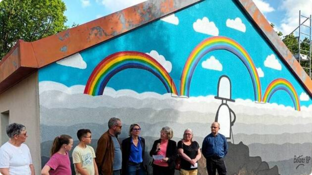 塞尔布是一个拥有 15000 名居民的大镇,以生产瓷器而闻名,距离捷克边境仅几公里。自 2001 年签署结对协议以来,博古泽(缅因-卢瓦尔省)和这个巴伐利亚小镇一直在携手合作。正如负责协会和体育事务的副市议员纳代热-布隆(Nadège Blon)在上周五奥比诺建筑群艺术家博特罗-波普(Botero Pop)创作的不朽壁画揭幕仪式上提醒我们的那样,四分之一个世纪的邂逅、发现和联系跨越了国界。她补充说:"这幅壁画在博古泽和塞尔布之间建立了视觉对话,具有强烈、清晰和共同的意义:它使结对成为居民日常生活的一部分,成为活生生的当代现实,而不是凝固的记忆:"除此之外,它还是一个持久的标志,表明我们致力于建设一个在多样性中团结的欧洲,致力于超越国界的交流,致力于汇聚各代人的文化。