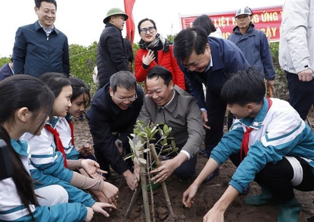 本周二(2 月 5 日)上午,在太平省(北部)的 Thai Thuy 湿地自然保护区,自然资源和环境部与该省人民委员会合作启动了 2025 年春季植树活动,以纪念世界湿地日。