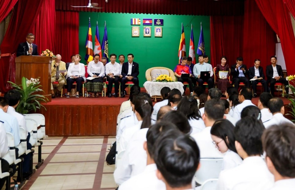 Den Vorsitz der Zeremonie führte Seine Exzellenz Herr HANG Chuon Naron, Vizepremierminister und Minister für Bildung, Jugend und Sport. In seiner Ansprache betonte er die strategische Rolle des Französischunterrichts bei der Entwicklung des Bildungssystems.dukativen Systems in Kambodscha als Hebel für die kulturelle Öffnung, die Beschäftigungsfähigkeit, die internationale Zusammenarbeit und die Fortsetzung der Hochschulbildung.