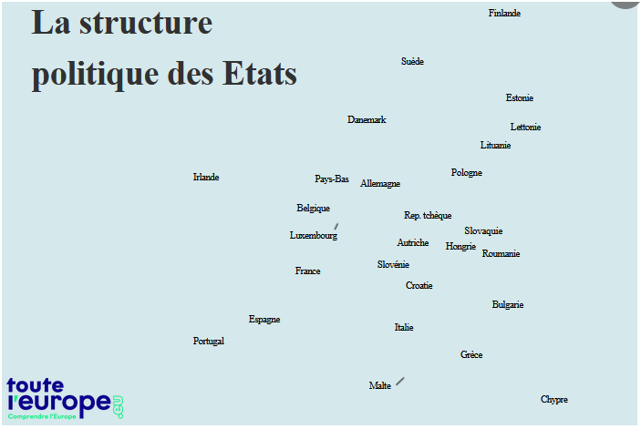 From the Federal Republic of Germany to the "one and indivisible" French Republic, from the Swiss Confederation to the "regionalised" states of Spain and Italy, Europe has a variety of territorial and political organisations.From the Federal Republic of Germany to the "one and indivisible" French Republic, the Swiss Confederation and the "regionalised" states of Spain and Italy, Europe has a variety of territorial and political organisations. The structure of states corresponds to the distribution of political powers within the territory of a country, and the division of competences between the different sovereign entities that make them up. Defined in the constitution of the member states, it may change over time.